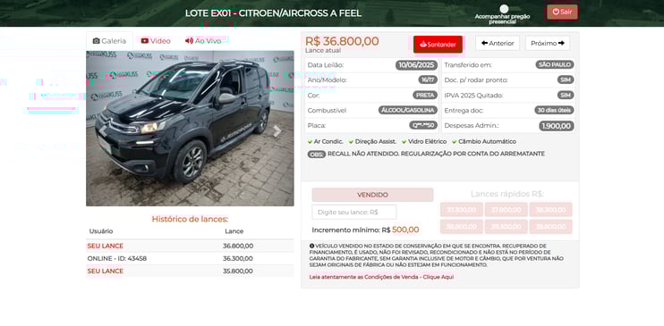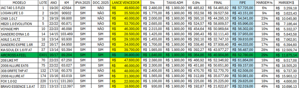 Analise de lotes do Leilão ocorrido em 10/06/2025