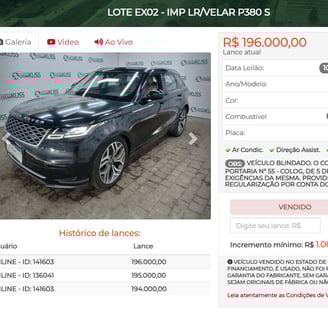 Lote arrematado em 10/06/2025 com 29% abaixo da Tabela